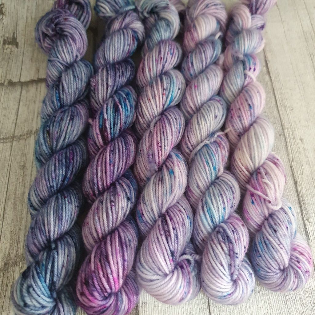 Speklejen kanssa kannattaa varautua yllätyksiin. Monet värit ovat väriseoksia, jolloin yksittäiset väripilkut saattavat yllättää. On myös hauskaa tehdä omia jauhesekoituksia ja katsoa mitä tulee. Speklejen kanssa vaikeinta oli alkuun pysyä kohtuudessa ja malttaa odottaa värin kiinnittyminen. Lopputulokseen voi vaikuttaa pienillä asioilla, esimerkiksi painamalla lankaa alaspäin veteen heti värin lisäämisen jälkeen, jolloin saa speklejen ympärille tasaista väriä.