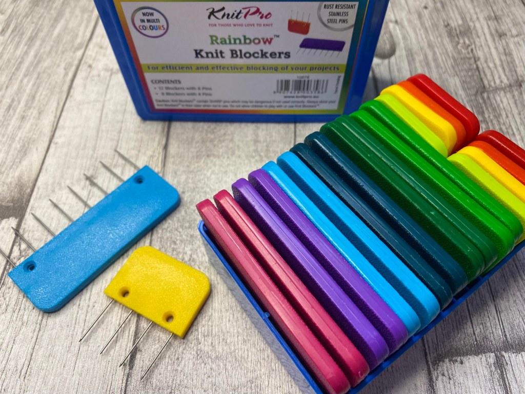 Käytin pingotuksessa Knit Pron pingotuskampoja, Kerrankin työssä oli vain suoria linjoja ja kammat toimivat hyvin. Tavallisesti suosin perinteisiä nuppineuloja.