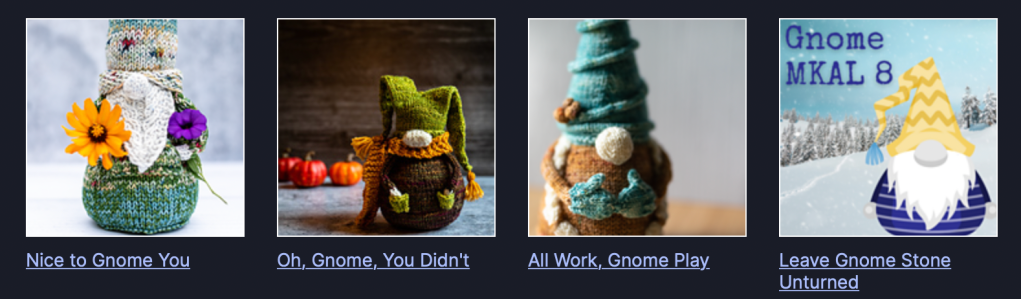 Törmäsin somessa hauskoihin neulottuihin tonttuihin. Suunnittelijan sivuilta löysin a Year of Gnomes yhteisneulonnan. Ideana on neuloa vuoden aikana 12 tonttua, osallistua voi vähemmilläkin tontuilla. Tapahtuma juhlistaa suunnittelijan, Sarah Schiran, 12 tonttumallia. Tonttujen ohjeet ovat ostettavissa Ravelrystä.