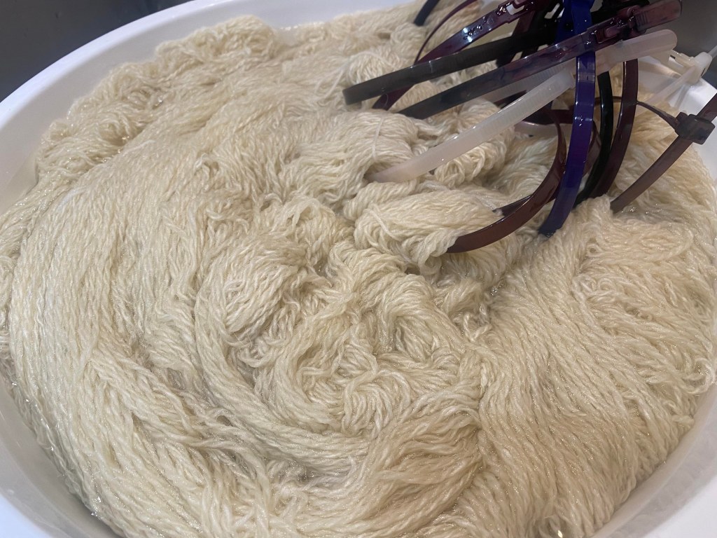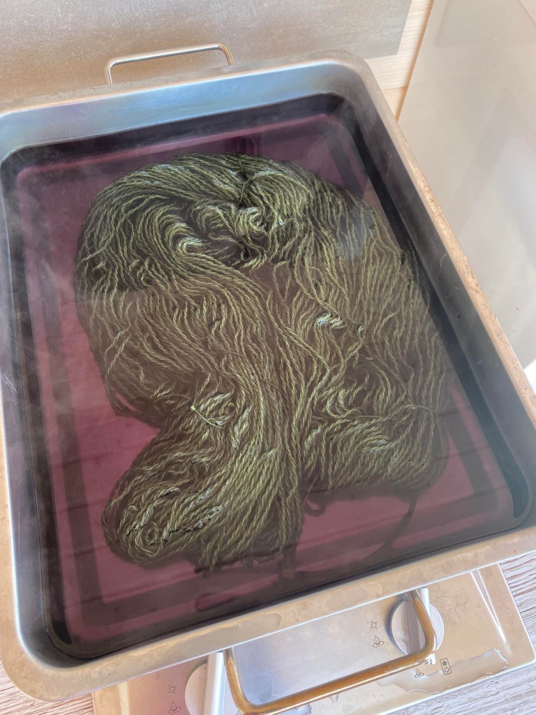 Väri tarttui lankaan hyvin, eikä sitä vuotanut loppuhuuhtelussa pois.