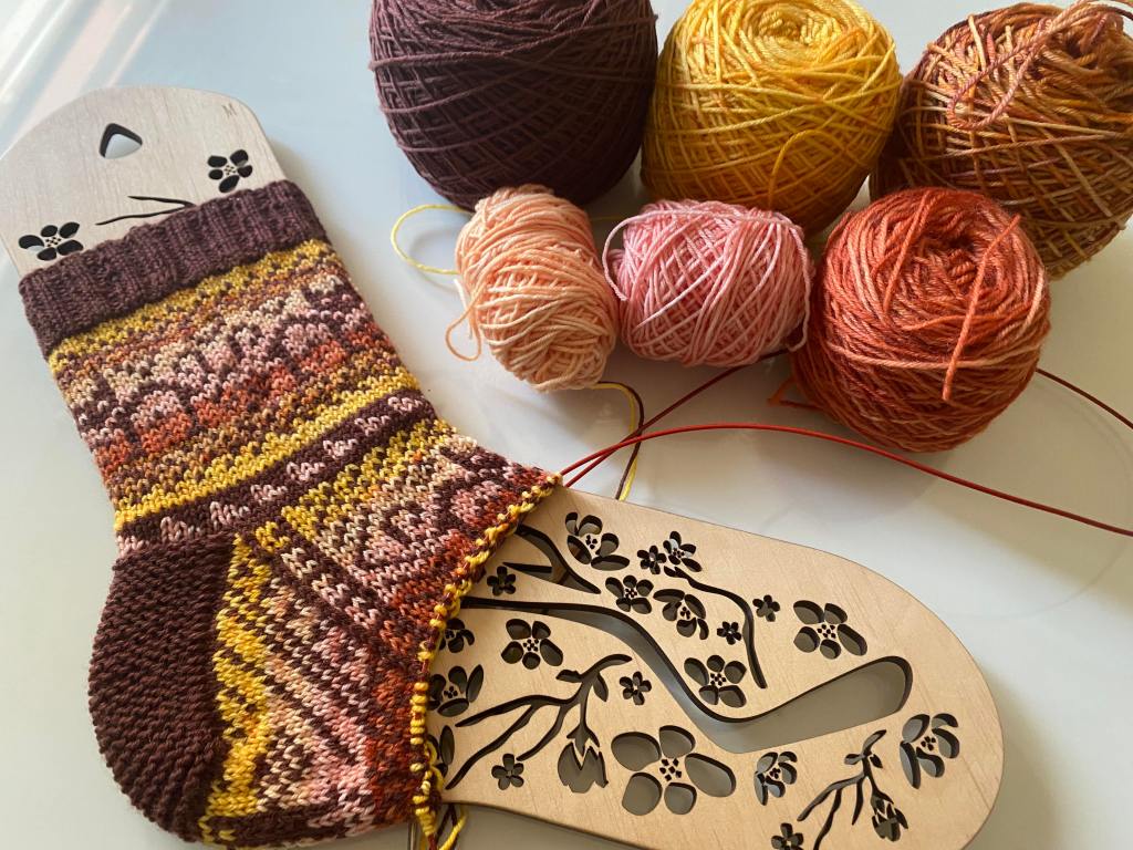 Kuvia otettaessa sukkia ei oltu vielä edes höyrytetty. Lankavalinnoilla voi vaikuttaa todella paljon kirjoneuleen tasaisuuteen.
