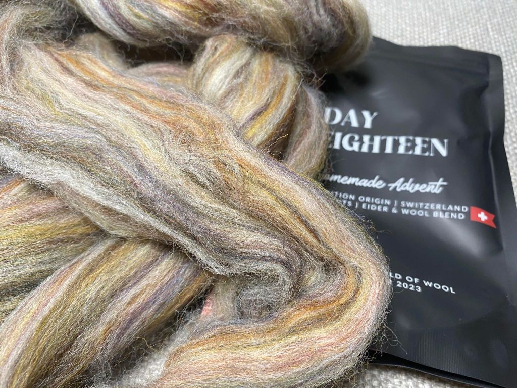 Päivän teemana oli Sveitsin Homemade Advent. Topsi oli kauniin vaaleita luonnonsävyjä Eideriä ja muuta villasekoitetta.