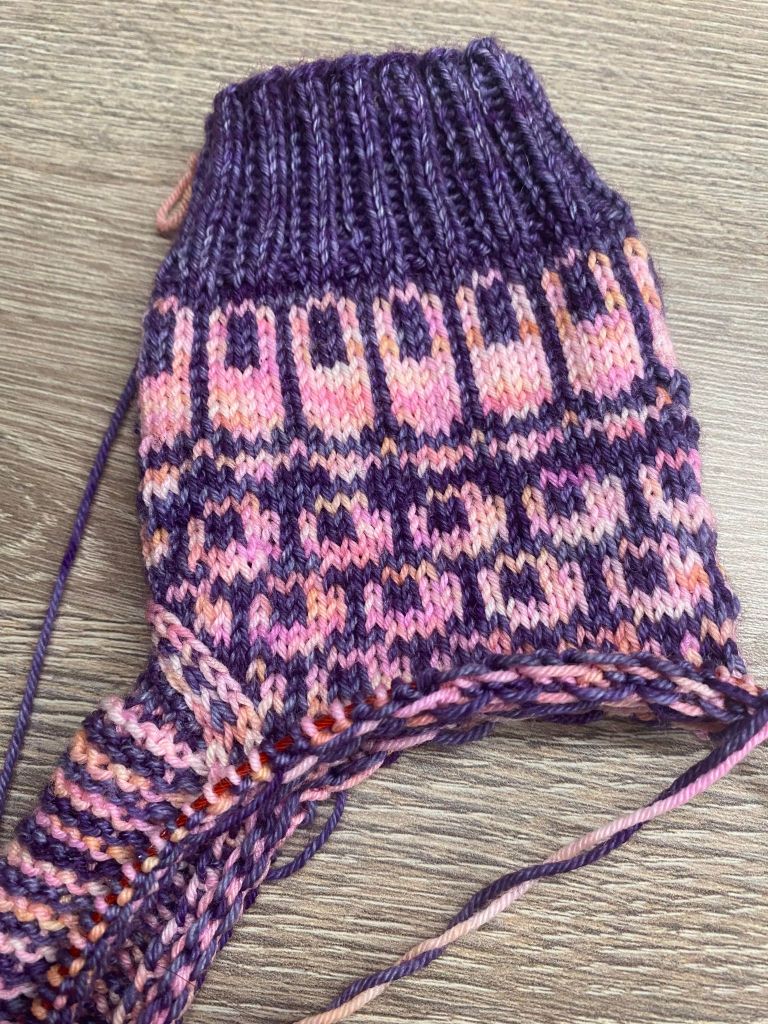 Aivan kuten käsineiden kohdalla, aakkosboxin lähestyessä loppua sanojen keksimisestä tulee yhä haastavampaa. S-kirjaimesta valitsin lopulta sanan solu, aihe jatkaa hyvin Roosa nauha sukkien teemaa. Värimaailmaksi valikoin pinkkiä ja lilaa, värimaailma on samantapainen kuin kudosleikkeillä.