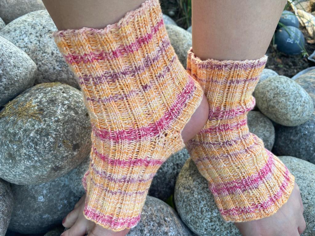 Resorissa on pieni pitsikuvio oikeiden silmukoiden kohdalla ja kantapää on tuttu Almamummon kantapää yksivärisenä.