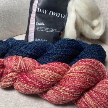 Päivä 10 Luukusta paljastui ihanaa kullankimalteista punaista villasekoitetta. Traditiona Irlannin punaiset kynttilät. Merinon, bambun, pellavan ja stellinan sekoite tuntui ihanan ylelliseltä. Minulla oli viime vuoden kalenterista tallella kaunis kullanhohtoinen topsi, jonka päätin yhdistää tähän. Kokeilin sekoittaa villoja eka rulliksi, sitten käsin ja lopulta vielä sekoituslaudalla. Langasta tuli ihanan ylellistä ja kimaltelevaa. Päivä 11 Pussukassa oli … More WoW joulukalenteri, luukut 10-12