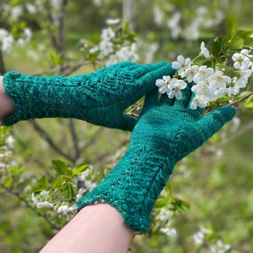 Yö, yöllä tuoksut muuttuvat huumaaviksi, tuuli tyyntyy, värit syvenevät ja tummenevat. Näiden ajatusten siivittämänä aloin suunnittelemaan Yö-sormikkaita. Rannekkeeseen täyteläistä ja joustavaa pitsiä, kämmeneen enemmän reikäistä ja paljastavaa pitsiä. Ohje näille käsineille löytyy Ravelrysta. Koska sininen ei kuuluu lempiväreihini, niin varastoistani ei sitä löytynyt. Lunta on satanut viikon sisällä kymmeniä senttejä, joten värjäilytkin saavat vielä tovin … More Yö-sormikkaat