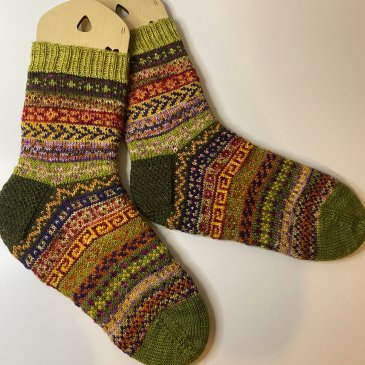 Joulukuun alussa odotin yhä rukkia, en oikein osannut päättää mitä tehdä, joten päädyin aloittamaan Susanna Winterin Fair Isle Advent MKALendar mysteerineulonnan. Ohjeen mukaan olisi voinut tehdä joko kaulurin tai pipon. En halunnut tehdä mysteerinä kumpaakaan, joten päädyin tekemään säärystimet itselleni. Valikoin ison kasan erilaisia vihreän, punaisen ja oranssin sävyisiä lankoja ja aloin neulomaan. Resoria varten … More Jämälankaprojekti, joulukalenteri MKAL